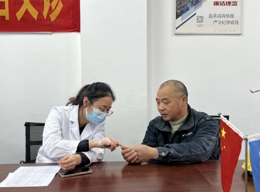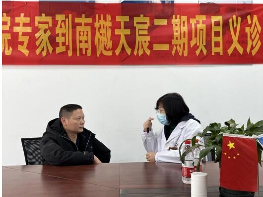 本次活動在南樾天宸二期項目部會議室開展。活動現場,健康專家采取面對面坐診形式,為員工進行健康答疑,提出針對性的預防和醫療建議,引導員工在工作之余養成健康生活習慣,加強多方面健康知識學習。由于長期在戶外進行施工工作,一線員工們大多存在不同程度的腰椎損傷、噪音聾、手臂震動病等職業疾病,面對此情況,專家們現場教授員工健康自測方法,并為員工量身打造體檢方案,便于員工下一步的健康診療。