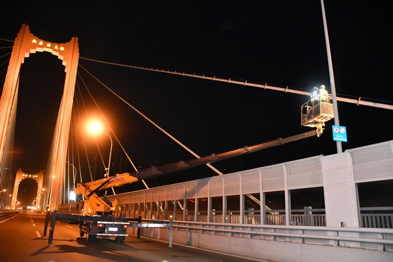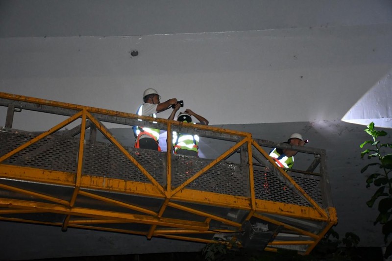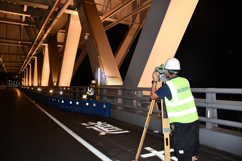 (檢測團(tuán)隊(duì)在夜間對橋隧進(jìn)行檢測工作 )
