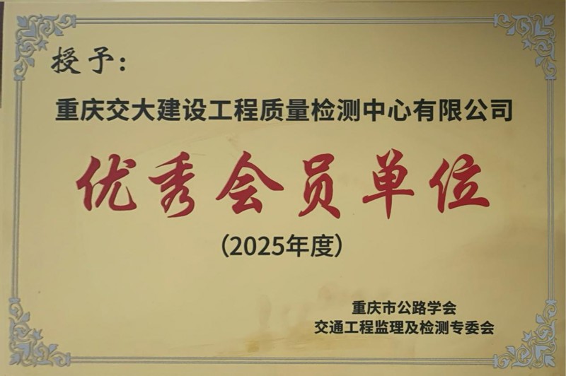 近日,重慶市公路學會交通工程監理及檢測專業委員會第四屆會員大會暨學術交流會成功舉行。會上,重慶設計集團市建科院所屬子企業重慶交大建設工程質量檢測中心有限公司被授予“2025年度優秀會員單位”稱號,公司技術總監張永水榮獲“2025年度先進工作者”榮譽稱號。
